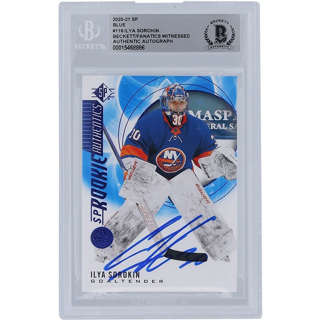 Carte de recrue authentifiée dédicacée par Ilya Sorokin des Islanders de New York 2020-21 Upper Deck SP Blue #116 Beckett Fanatics