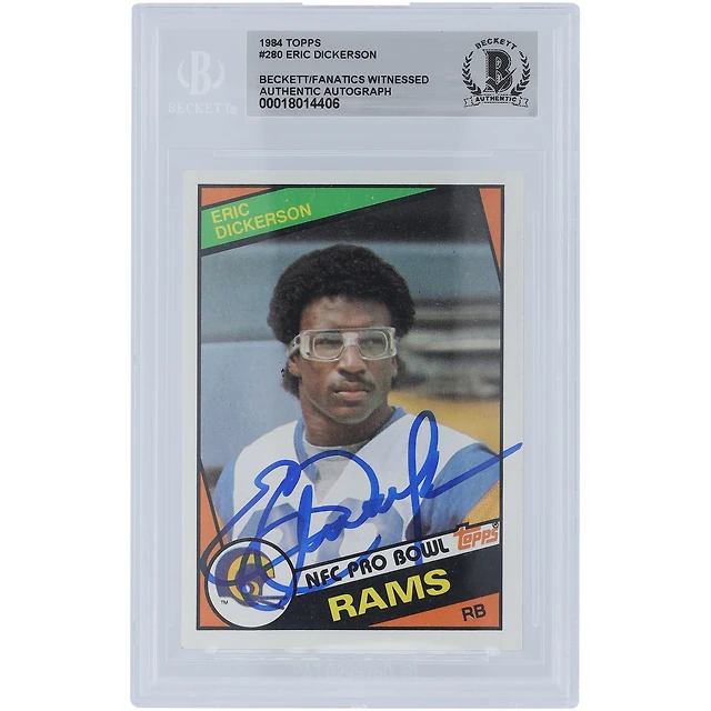 Carte de recrue authentifiée signée par Eric Dickerson des Los Angeles Rams, Topps n° 280 de 1984, présentée par les fans de Beckett