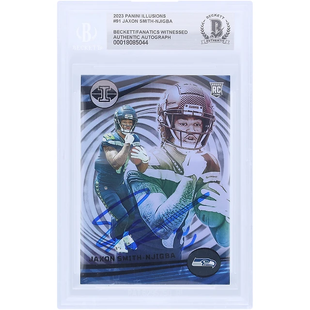 Carte de recrue authentifiée signée par Jaxon Smith-Njigba des Seattle Seahawks, numéro 91 de la Panini Illusions 2023, présentée par les fans de Beckett