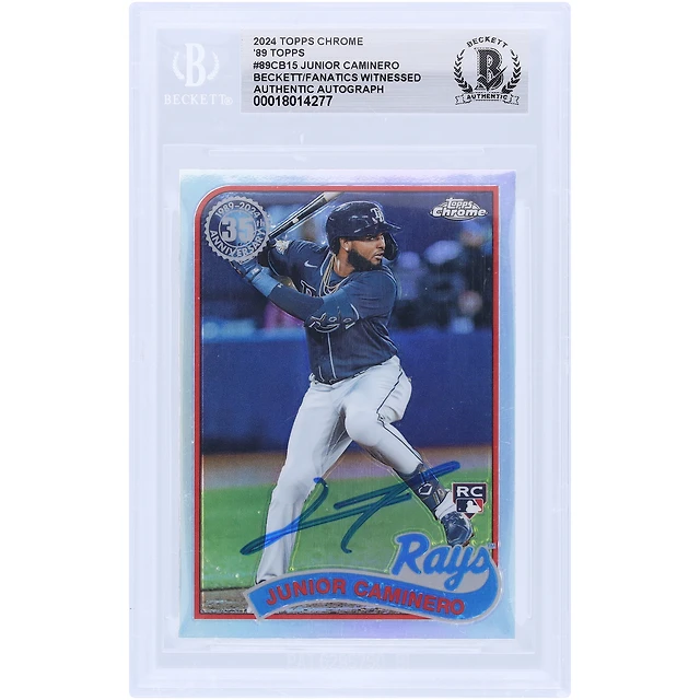 Carte de recrue authentifiée signée par les fans de Beckett, Topps Chrome Update 2024 des Rays de Tampa Bay, signée Junior Caminero, n° 89CB-15.