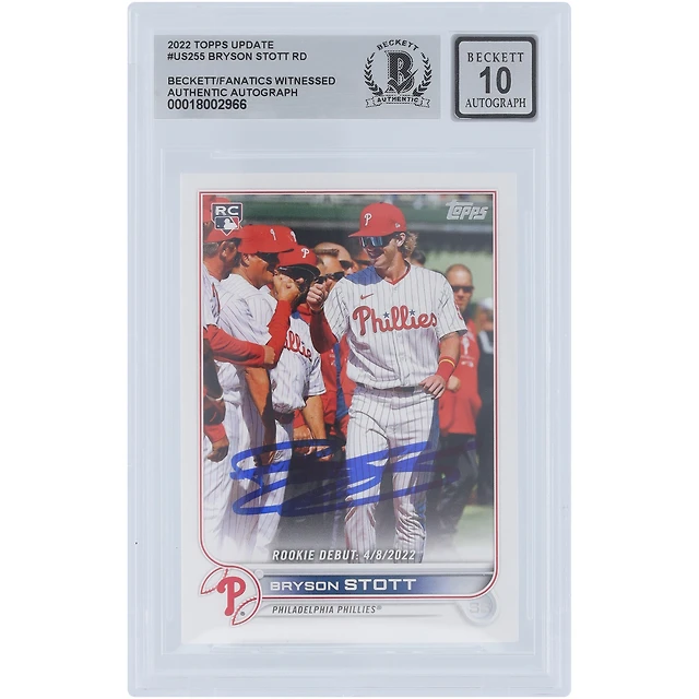 Carte de recrue autographiée 2022 Topps #US255 de Bryson Stott des Phillies de Philadelphie, carte de recrue authentifiée 10, vue par les fans de Beckett