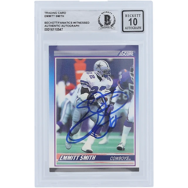 Carte de recrue numéro 101 autographiée par Emmitt Smith des Dallas Cowboys, carte de score supplémentaire n° 101 de Beckett, authentifiée et témoin des fanatiques