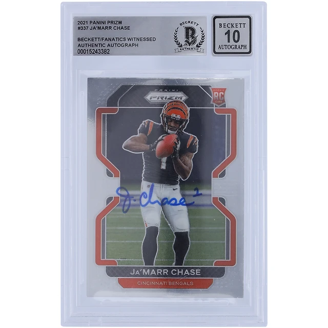 Carte de recrue Panini Prizm #337 2021 autographiée par Ja'Marr Chase des Bengals de Cincinnati, témoin des fanatiques de Beckett, authentifiée 10