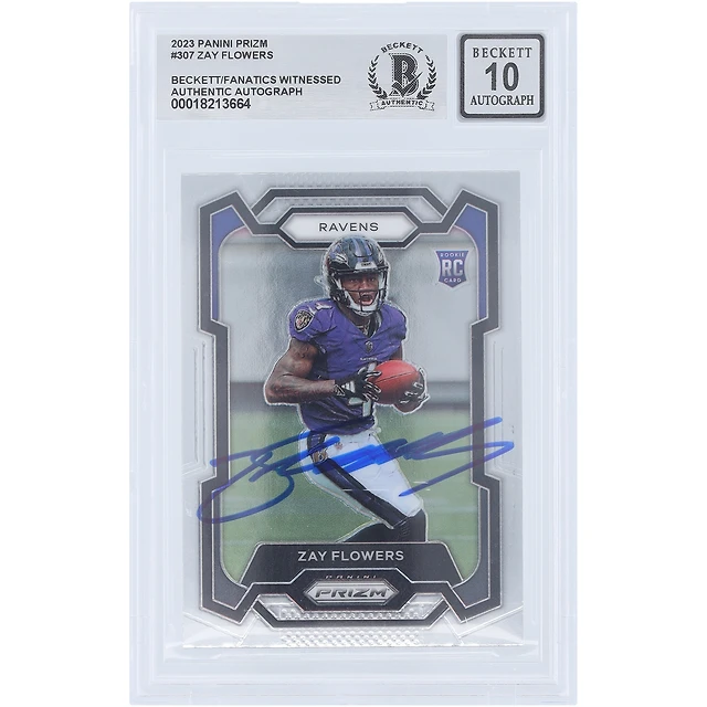 Carte de recrue Panini Prizm n° 307 2023 autographiée par Zay Flowers des Baltimore Ravens, présentée par les fans de Beckett et authentifiée par 10 fans