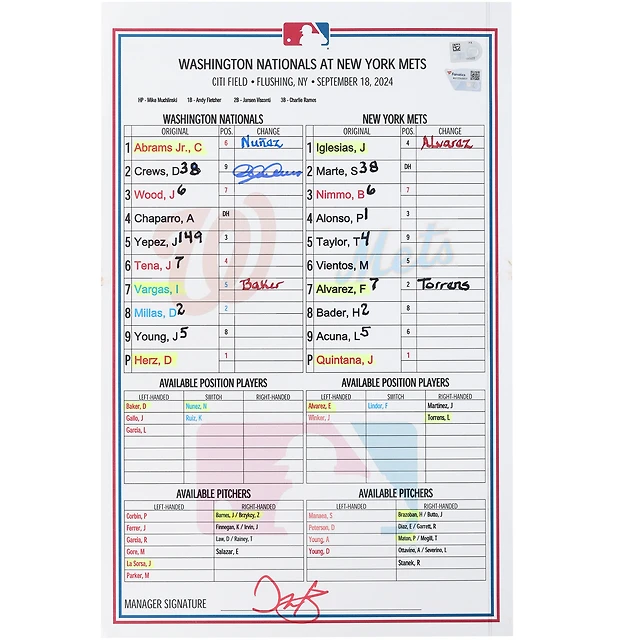 Carte dédicacée de Dylan Crews, équipe des Nationals de Washington, lors du match contre les Mets de New York