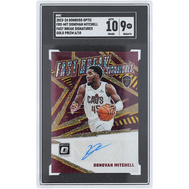 Carte Panini Donruss Optic Gold Prizm 2023-24 autographiée par Donovan Mitchell des Cleveland Cavaliers #FBS-MIT #6/10 SGC authentifiée 9/10
