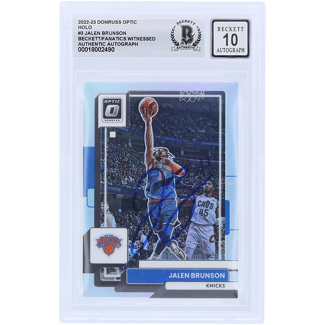 Carte Panini Donruss Optic Holo n° 3 Beckett autographiée par Jalen Brunson des New York Knicks 2022-23, carte authentifiée et témoin des fanatiques