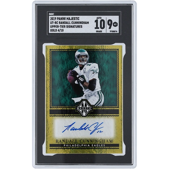 Carte Panini Majestic Gold Upper Tier Signatures 2019 autographiée par Randall Cunningham Philadelphia Eagles #UT-RC #4/10 SGC authentifiée 9/10