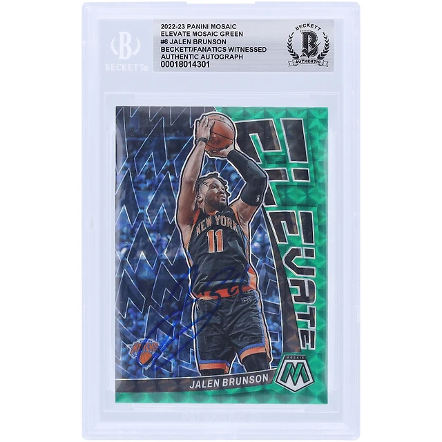 Carte Panini Mosaic Elevate Green Mosaic n° 6 Beckett autographiée par Jalen Brunson des New York Knicks 2022-23, carte authentifiée par des fanatiques témoins