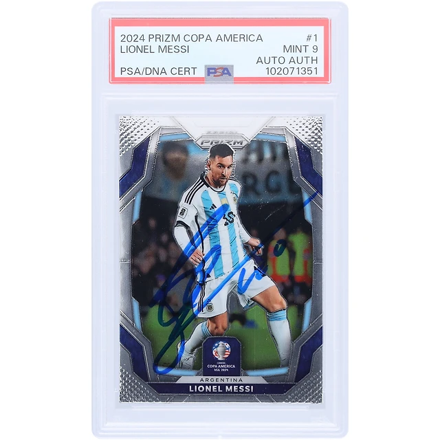 Carte Panini Prizm Copa America n°1 2024 autographiée par Lionel Messi, équipe nationale argentine, PSA, authentifiée, Mint 9