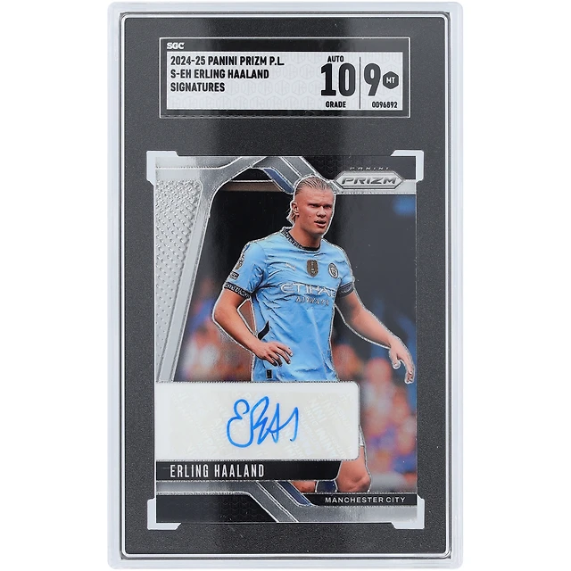 Carte Panini Prizm Premier League Signatures 2024-25 autographiée par Erling Haaland pour Manchester City #S-EH SGC authentifiée 9/10