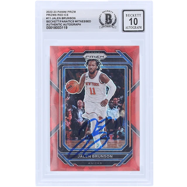 Carte Panini Prizm Red Ice Prizm n° 11 signée par Jalen Brunson des New York Knicks 2022-23, signée Beckett Fanatics, authentifiée.