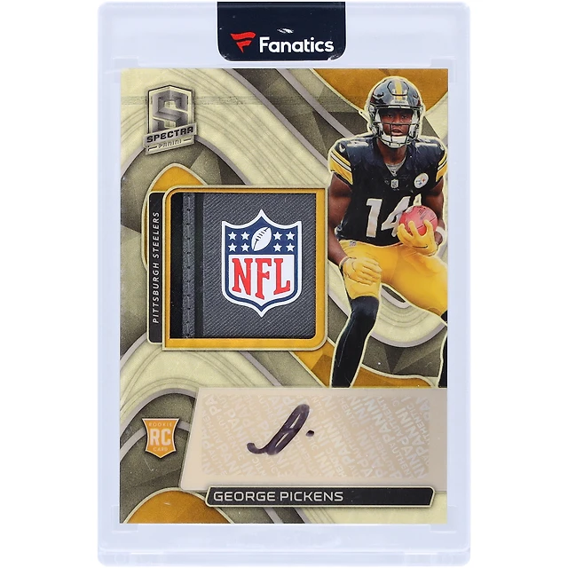 Carte recrue autographiée Panini Spectra NFL Shield Relic Gold Vinyl #218 #1/1 2022 des Pittsburgh Steelers