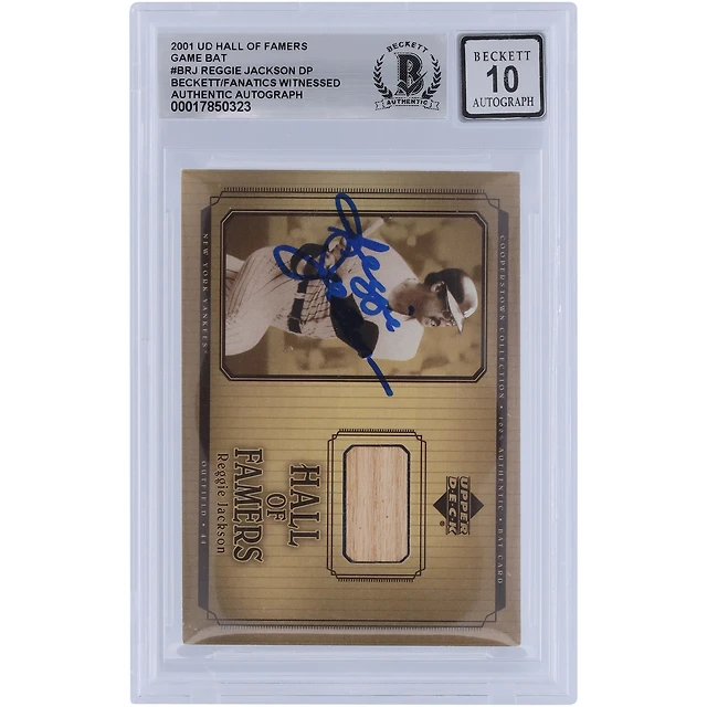 Carte relique de batte des membres du Temple de la renommée de la collection Cooperstown Upper Deck 2001 autographiée par Reggie Jackson des Yankees de New York #B-RJ Beckett, carte authentifiée par des fanatiques témoins