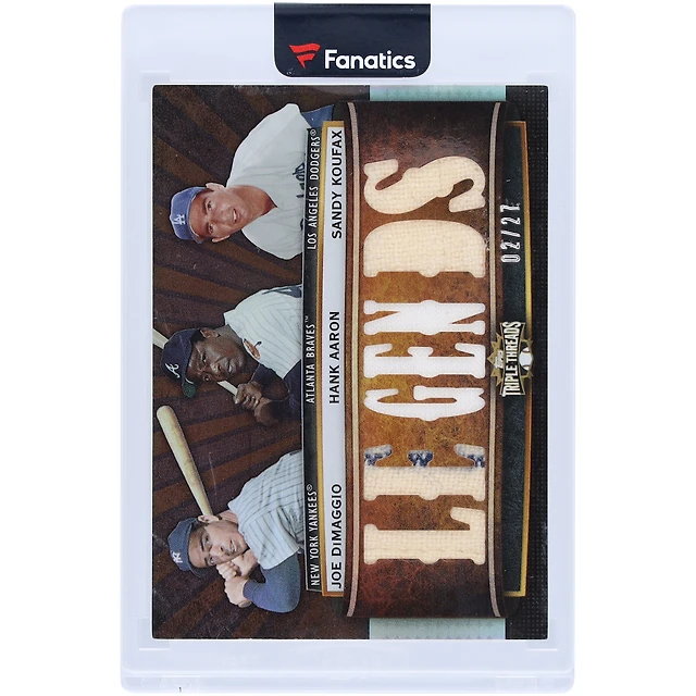 Carte relique multi-équipes MLB 2011 Topps Triple Threads #TTRC-60 #2/27 de Joe DiMaggio, Hank Aaron et Sandy Koufax