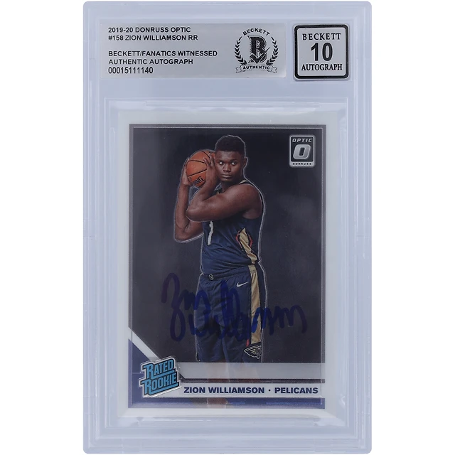 Carte Rookie #158 autographiée par Zion Williamson des New Orleans Pelicans Panini Donruss Optic 2019-20, classée Rookie n°158, Beckett Fanatics Witnessed Authenticated 10 Rookie