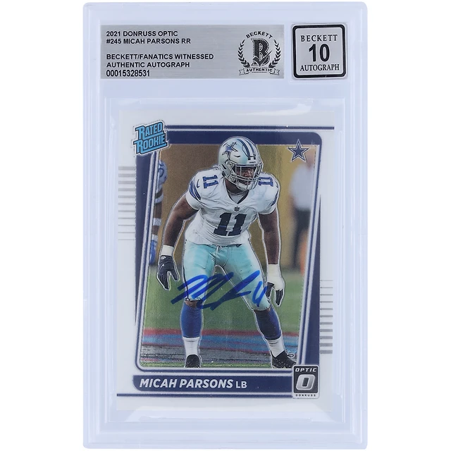 Carte Rookie #245 autographiée 2021 Panini Donruss Optic de Micah Parsons Dallas Cowboys, classée Rookie n°245, Beckett Fanatics, authentifiée et témoin