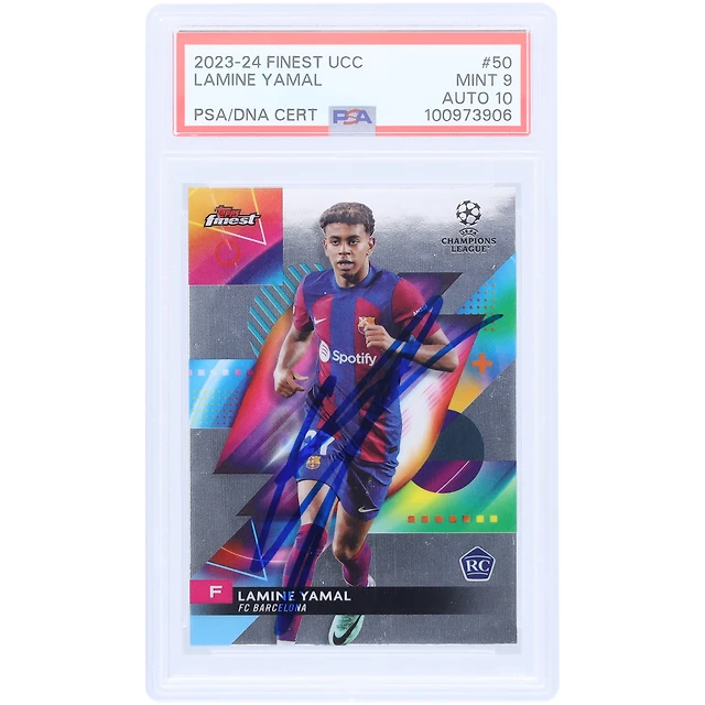 Carte Rookie 9/10 authentifiée 2023-24 Topps Finest UCC #50 PSA autographiée par Lamine Yamal Barcelone