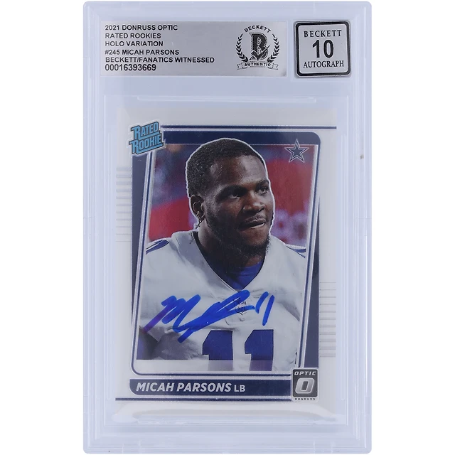 Carte Rookie Holo 2021 autographiée Panini Donruss Optic Rated Rookie Variation #245 Beckett Fanatics Witnessed Authenticated 10 Rookie Card de Micah Parsons Dallas Cowboys