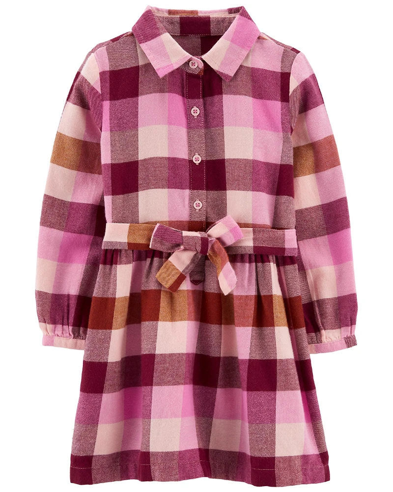 Carter's Plaid Cotton Flannel Shirt Dress Pink
