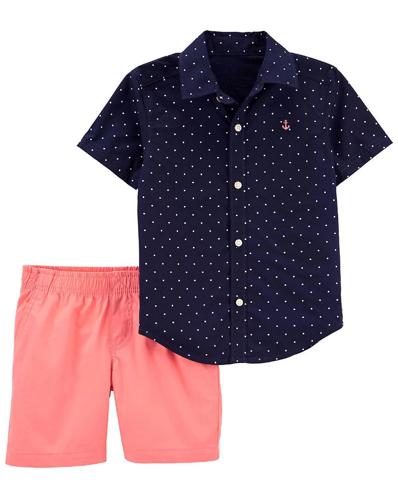 Carter's Two Piece Navy Button Down and Shorts Set
