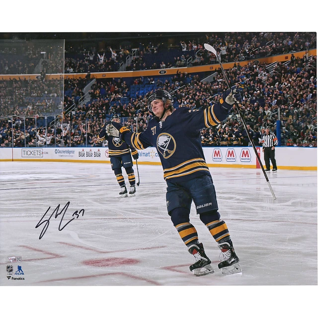Casey Mittelstadt Buffalo Sabres Autographed 16" x 20" Blue Jersey Goal Celebration Photograph
