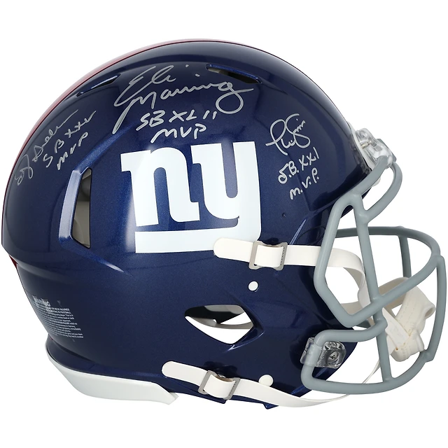 Casque authentique Riddell Speed autographié par Eli Manning, Phil Simms et Otis Anderson des New York Giants avec plusieurs inscriptions MVP du Super Bowl