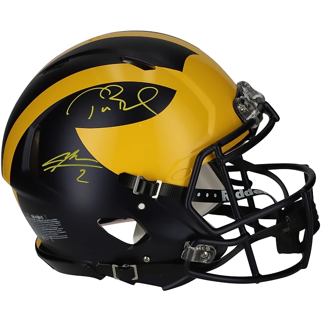 Casque authentique Riddell Speed autographié par Tom Brady et Charles Woodson des Michigan Wolverines