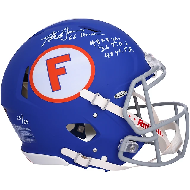 Casque authentique Riddell Throwback Royal Speed autographié par Steve Spurrier des Florida Gators avec plusieurs inscriptions
