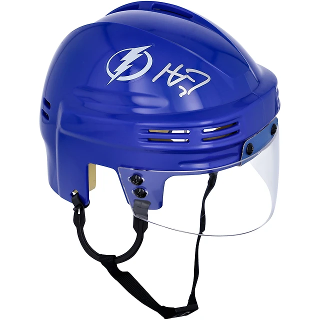 Casque bleu miniature autographié par Haydn Fleury du Lightning de Tampa Bay