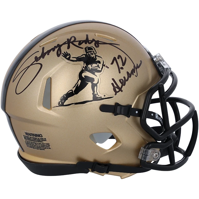 Casque miniature Riddell Heisman 2023 autographié par Johnny Rodgers des Nebraska Huskers avec inscription « 72 Heisman »