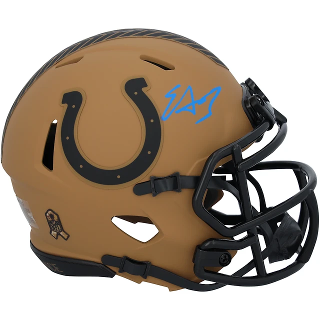 Casque Riddell 2023 Salute To Service Speed Mini autographié par Edgerrin James Indianapolis Colts