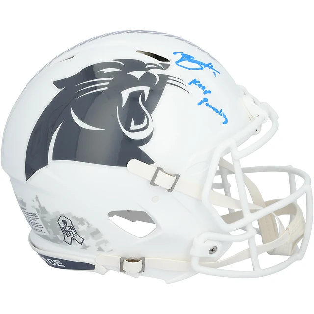 Casque Riddell authentique autographié par Bryce Young Carolina Panthers 2024 Salute To Service Speed avec inscription « Keep Pounding »