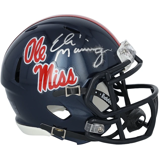 Casque Riddell Navy Speed Mini autographié par Eli Manning des Ole Miss Rebels