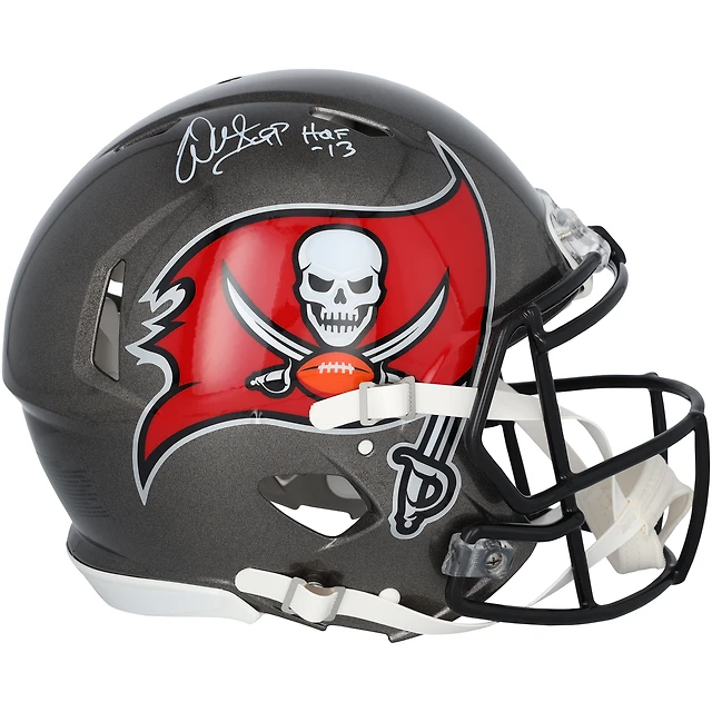 Casque Riddell Speed authentique autographié par Warren Sapp des Tampa Bay Buccaneers avec inscription « HOF 13 »