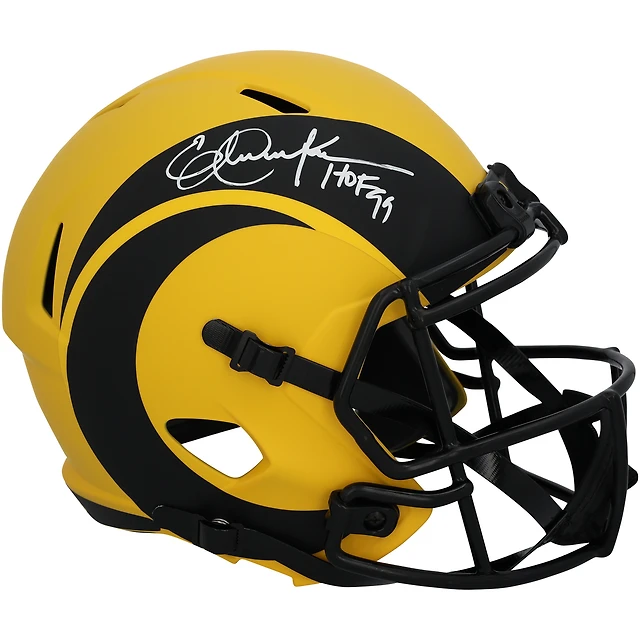 Casque Riddell Speed Rave autographié par Eric Dickerson des Los Angeles Rams avec inscription « HOF 99 »