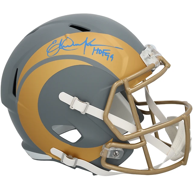Casque Riddell Speed Slate autographié par Eric Dickerson des Los Angeles Rams, avec inscription « HOF 99 »