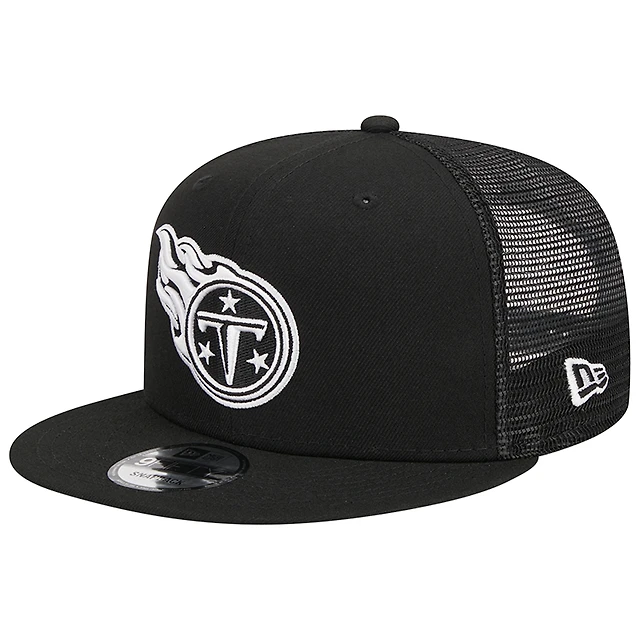 Casquette à visière plate Main Trucker 9FIFTY Snapback pour homme de New Era, noire, Tennessee Titans Casquette à visière plate Main Trucker 9FIFTY Snapback pour homme de New Era, noire, Tennessee Titans