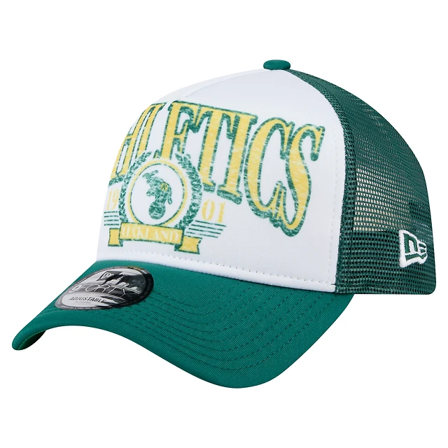 Casquette ajustable New Era 9FORTY blanche/verte Kelly pour homme, collection Cooperstown, Oakland Athletics