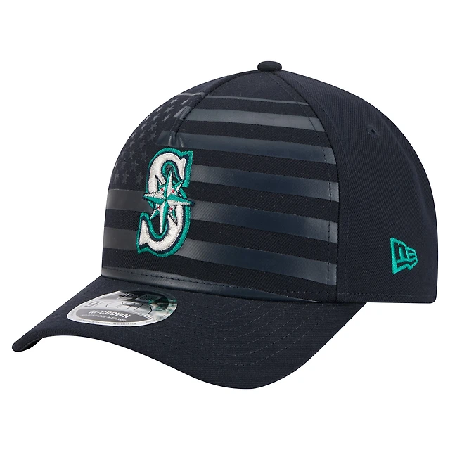 Casquette ajustable New Era 9FORTY M-Crown A-Frame bleu marine pour homme, motif drapeau américain des Mariners de Seattle