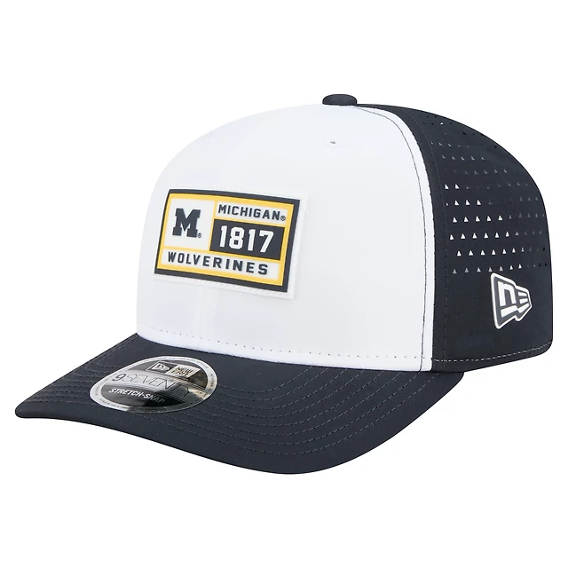 Casquette ajustable New Era 9SEVENTY blanche/bleu marine Michigan Wolverines pour homme, perforée et patchée