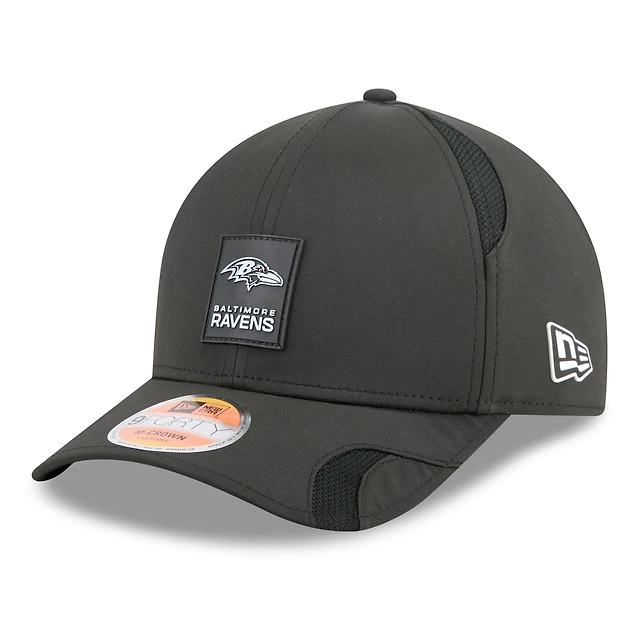 Casquette ajustable New Era noire Baltimore Ravens 2025 Sideline 9FORTY pour jeune