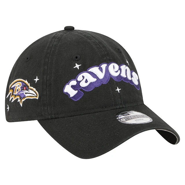 Casquette ajustable New Era noire Baltimore Ravens Cheer 9TWENTY pour jeunes filles