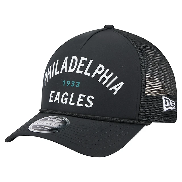 Casquette ajustable New Era noire Philadelphia Eagles Active Minimalist M-Crown A-Frame 9FORTY pour homme