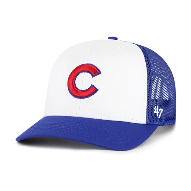 Casquette ajustable pour homme, modèle Freshman Trucker, blanc/bleu roi, des Chicago Cubs, 1947