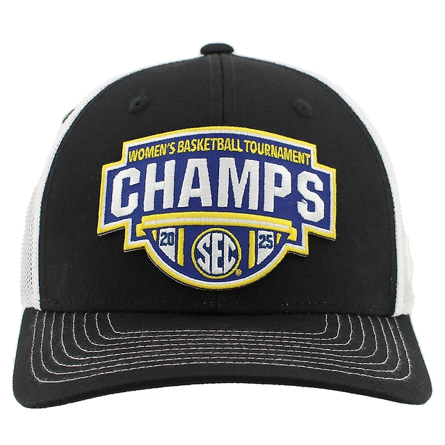 Casquette ajustable unisexe Zephyr noire/blanche South Carolina Gamecocks 2025 SEC Women's Basketball Conference Tournament Champions Locker Room Trucker