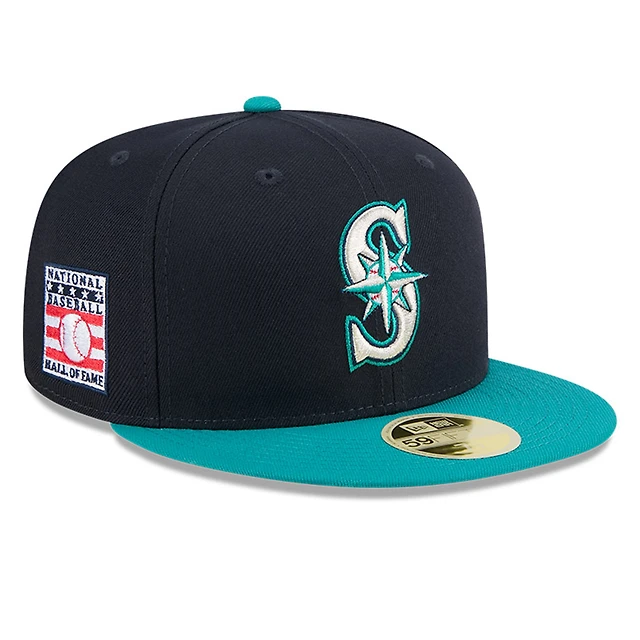 Casquette ajustée 59FIFTY bleu marine des Seattle Mariners pour homme, style Temple de la renommée du baseball