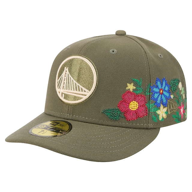Casquette ajustée 59FIFTY Golden State Warriors pour homme New Era Olive à fleurs ton sur