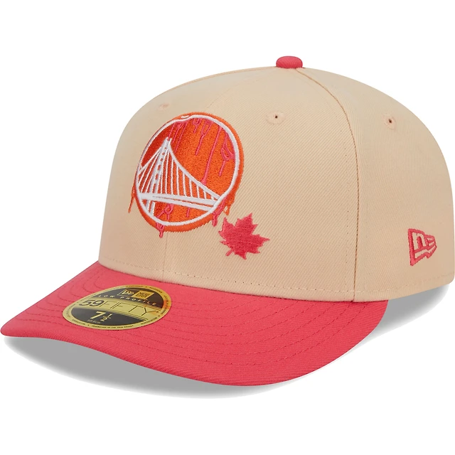 Casquette ajustée 59FIFTY New Era kaki/corail Golden State Warriors Drip Low Profile pour hommes