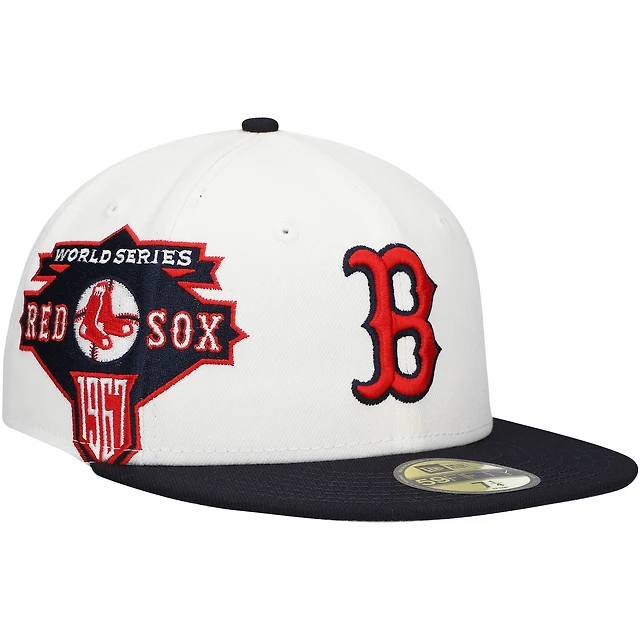 Casquette ajustée 59FIFTY New Era pour hommes, blanc/bleu marine, Boston Red Sox Major Sidepatch